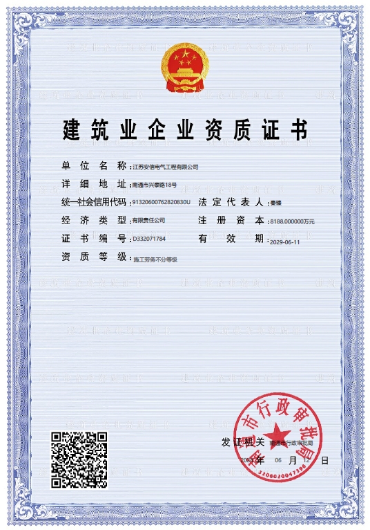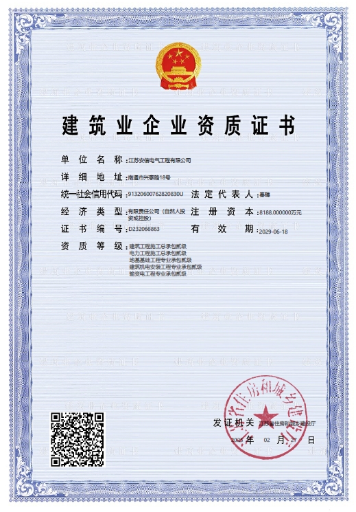 在創(chuàng)業(yè)之初,公司就堅(jiān)持高起點(diǎn)的戰(zhàn)略思路,廣納賢才,集聚行業(yè)精英,創(chuàng)新發(fā)展,做優(yōu)企業(yè)品牌。現(xiàn)已取得:承裝二級(jí)、承修二級(jí)、承試二級(jí),電力工程施工總承包二級(jí),輸變電工程專業(yè)承包二級(jí),建筑工程施工總承包二級(jí),建筑機(jī)電安裝專業(yè)承包二級(jí),地基基礎(chǔ)專業(yè)承包二級(jí)資質(zhì)證書(shū),并通過(guò)了質(zhì)量、環(huán)境、職業(yè)健康和安全管理體系認(rèn)證,確保各項(xiàng)工作有序管控。